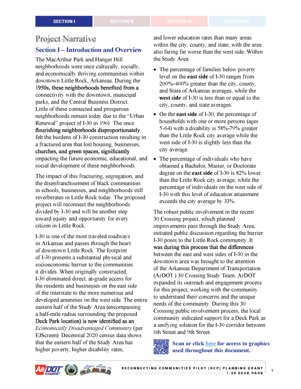 Figure 2: I-30 in Downtown Little Rock and Proposed Deck Park Location